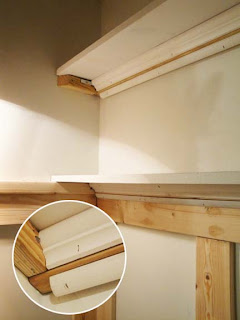 Before I could prime I had to caulk all the seams. Did you know that some of the moulding in your home, especially crown moulding, is usually made up of several different pieces and then caulked to hide the edges?