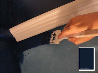 After trying some Benjamin Moore paint swatches, I settled on a deep navy blue called “Symphony Blue”. I knew I’d need to use some tinted primer before trying to paint such a dark color on the light walls. Unfortunately our Ace Hardware was out of stock. Luckily George, my friendly Ace Hardware paint consultant, told me how to mix my own.
