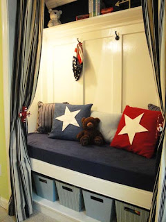 Last year I took the doors off one of the closets and put up some curtains so he could have a little hideaway.