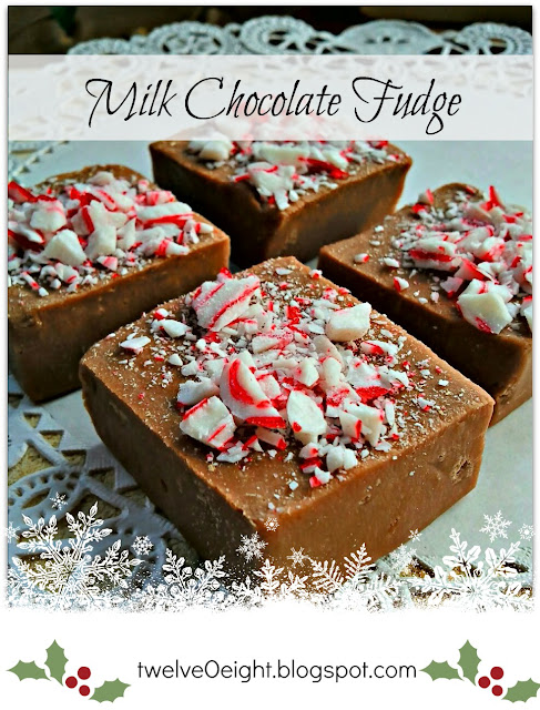 My mom and grandmother passed down their fudge recipe when I became an adult, and its one of my favorite Christmas treats. Since my grandmother doesn’t do as much baking anymore, I usually bring her some along with her Christmas gift! I immediately had warm fuzzies when Tanya from twelveOeight linked up her Milk Chocolate Fudge recipe! It’s similar to my grandmothers, but I really love that Tanya added Peppermint to the top – so pretty!