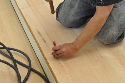 Danny’s crew checked the floor for nails and used a nail set to sink them below the surface of the wood.