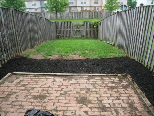 Most of our landscaping work happened in the backyard, although I did add one small euonymous and mulch the front beds. The backyard was a whole other matter. Over the years, our tenants’ dogs had either dug up or killed our plants and grass. So first I re-seeded the bare patches, and then my “Handy Andy” friend and I resealed the fence. That done, I spent one very long Saturday replanting and remulching the beds and finally powerwashing the patio.