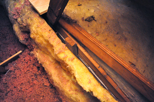 My friend’s attic had the right amount of insulation. Unfortunately, in a few places it wasn’t against the structure and therefore not actually insulating anything. James also suggested using weather-stripping and 6″ of rigid foam board to insulate the attic access panel.