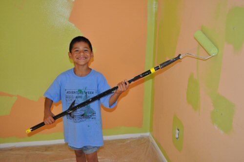 Looks great love all that patch work reminds me of the time I painted my room when I was a kid myself. Always good to get extra hands helping while painting.